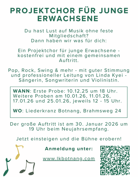 Projektchor Die Klärung weiterer Fragen und die Anmeldung sind per E-mail an vorstand@lkbotnang.com möglich.